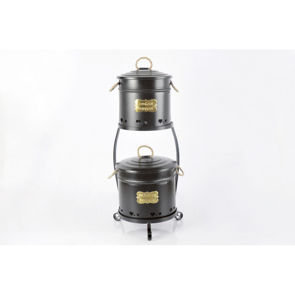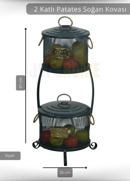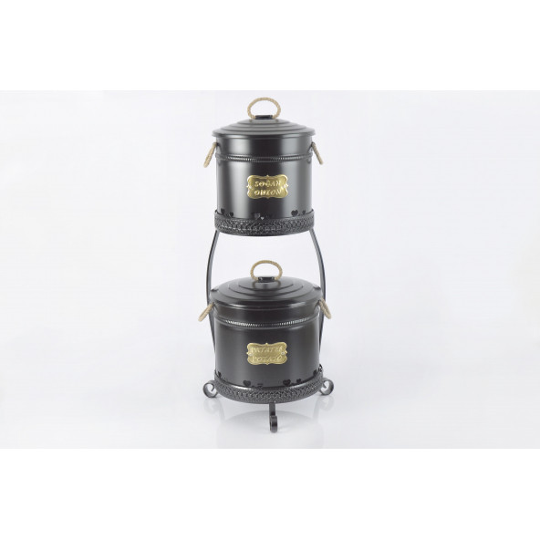 Galvaniz 2 Katlı Büyük Boy Metal Standlı Patates Soğan Kovası Siyah 1051 E