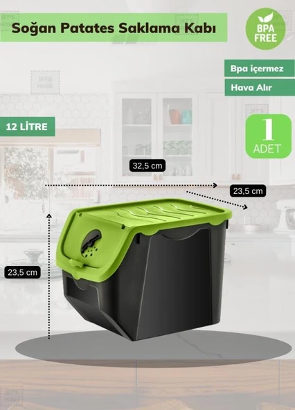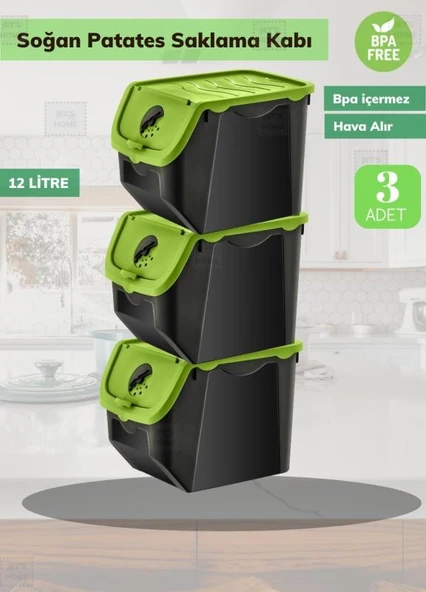 3’lü Yeşil Patateslik Soğanlık Erzak Kutusu Patates Soğan Sepeti Sebzelik 12 Lt* 3