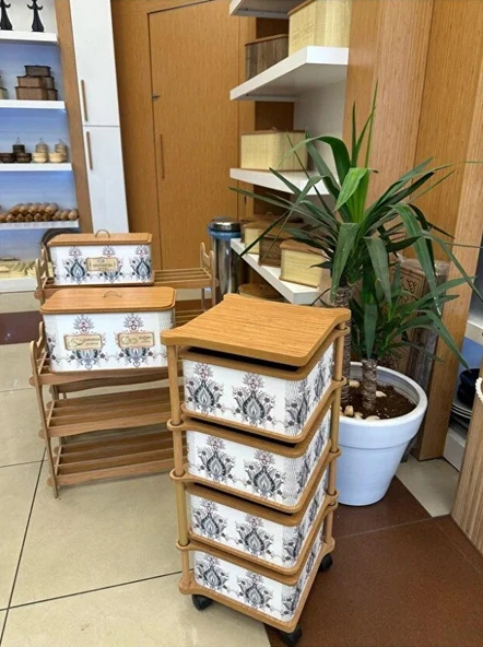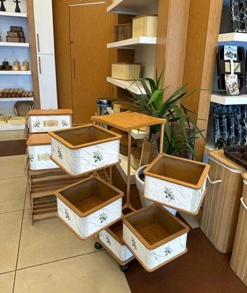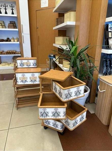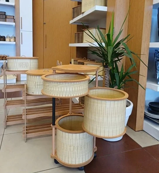2’li Tekerlekli Patateslik Soğanlık Erzak Kutusu Oyuncaklık Sebzelik Bambu Desenli 33 Lt