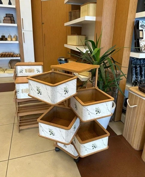 Ahşap Kare Sebzelik 5 Katlı Yana Açılır Patates Soğan Tekerlekli Sebzelik Zeytin