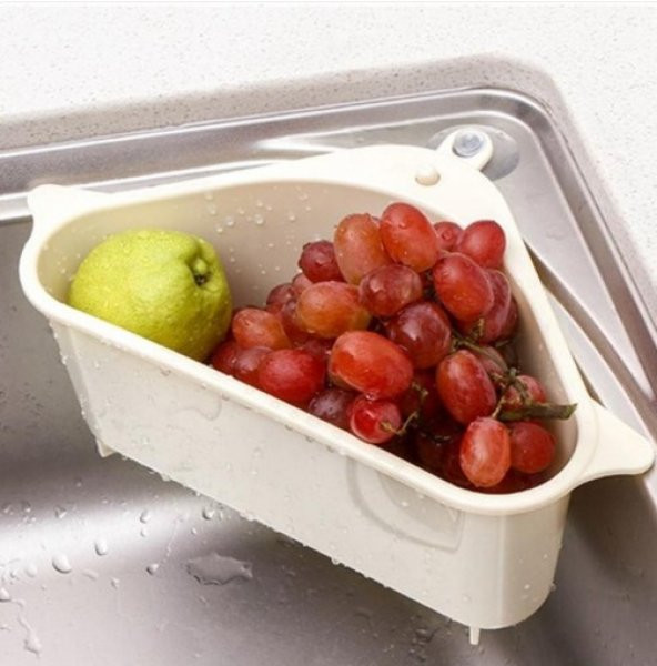 Vantuzlu Üçgen Sebze Meyve Lavabo Raf Evye Süzgeç Sünger Tutucu Düzenleyici Mutfak Organizer