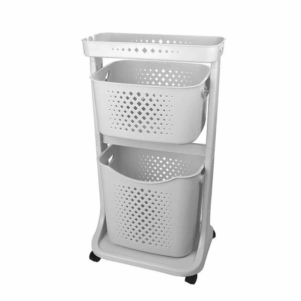 3’lü Tekerlekli Patateslik Soğanlık Oyuncak Kutusu Patates Soğan Sepeti Motek Gri 36 Lt