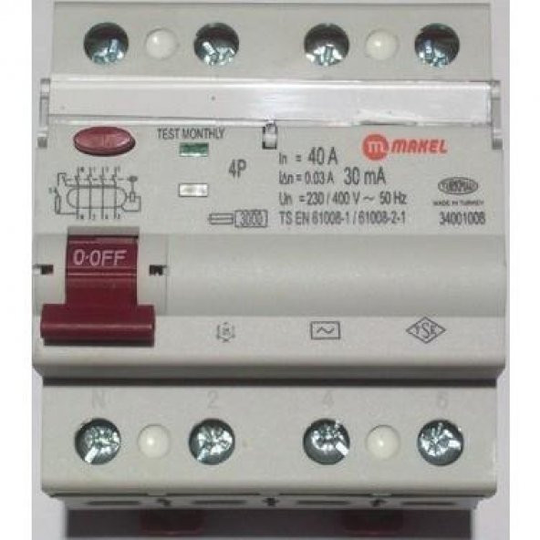 Makel Trifaze 4x40A 30mA 3KA Kaçak Akım Rölesi Hayat Koruma