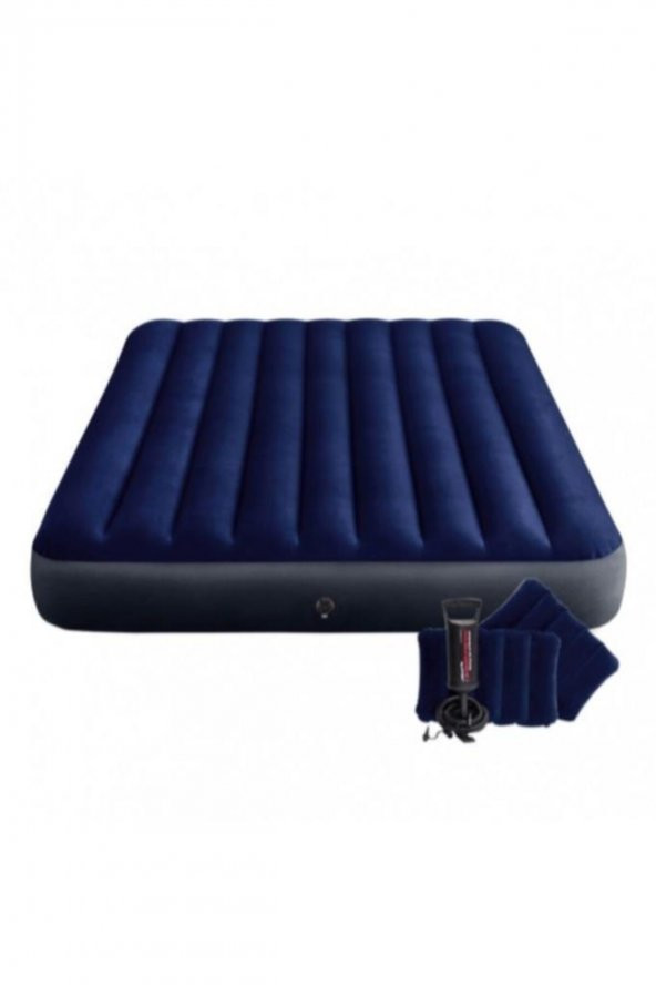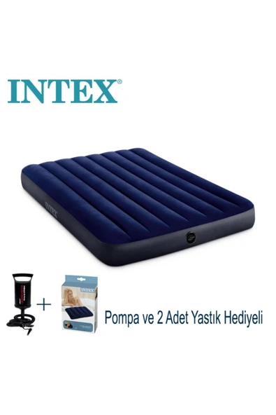 Intex Çift Kişilik Şişme Yatak + 2 Yastık + Pompa / Kamp Seti