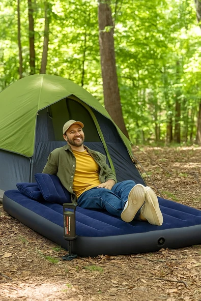 AteşTech Çift Kişilik Şişme Yatak + 2 Yastık + Pompa / Kamp Seti