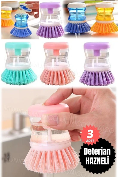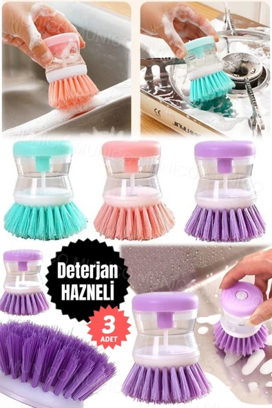 3 Adet Pratik Sabunluklu Bulaşık Fırçası - Ev ve Kamp Kullanımı İçin Sıvı Deterjan Hazneli Temizlik