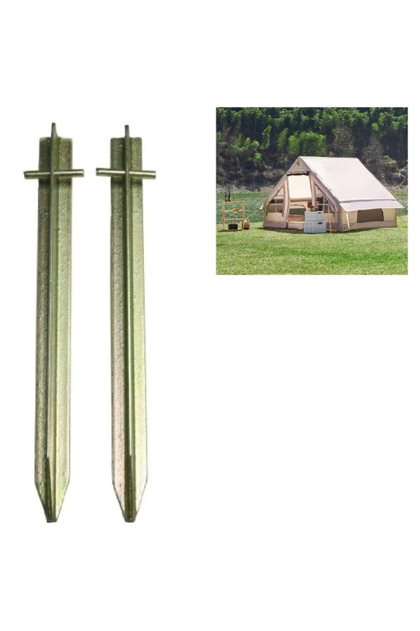 Depolife Kamp Çadırı Kazığı Çelik T Profil Zemin Çivisi 400mm Metal Çadır Kazığı 2li Galveniz Kaplama Kazık