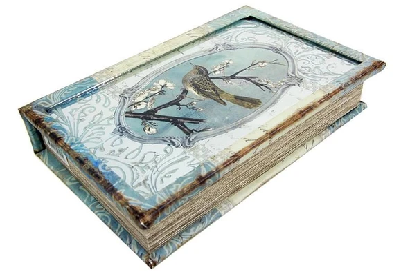 Kutu Kitap Aynalı Dalda Kuş Kitap Kutusu Dekoratif Hediyleik