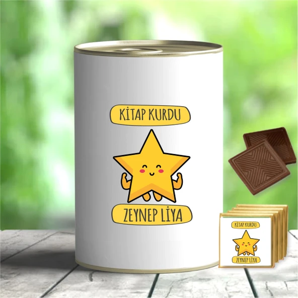 Kişiye Özel Kitap Kurdu Temalı Çikolata Konservesi - MK01