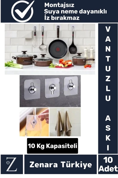 Premium Suya Neme Ekstra Dayanıklı Montajsız Banyo Mutfak Ultra Güçlü Vantuzlu Askı 10 Adet