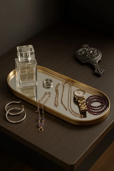 Aynalı Kozmetik Takı Düzenleyici Organizer & Servis Sunum Tepsisi