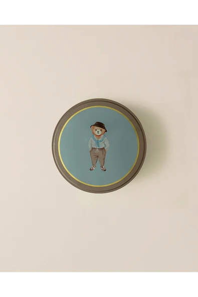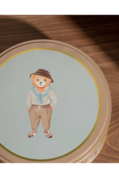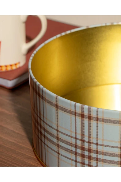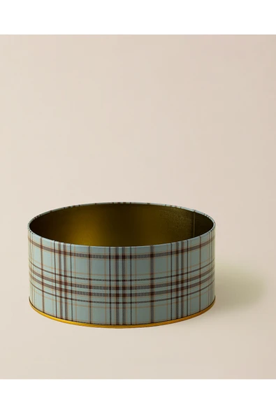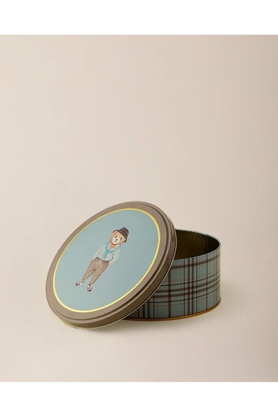 Jolie Yuvarlak Metal Kutu - Büyük Boy - Mavi/Vizon