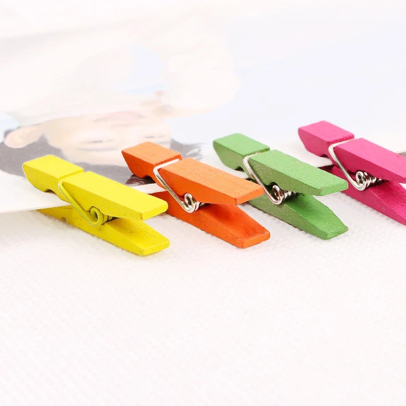 Mini Renkli Mandal 2.5 Cm Küçük Renkli Mandal 100 Adet Ahşap