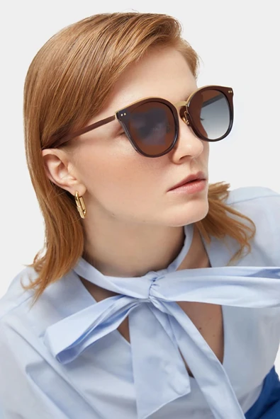 Yuvarlak Büyük Çerçeve Kahverengi Kadın Güneş Gözlüğü