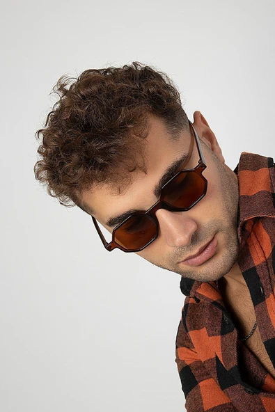 Beşgen Köprülü Kahverengi Erkek Güneş Gözlüğü