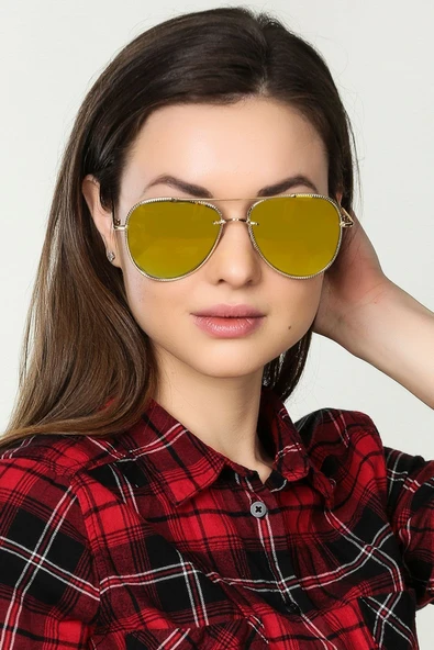 Aynalı Cam Sarı Kadın Güneş Gözlüğü