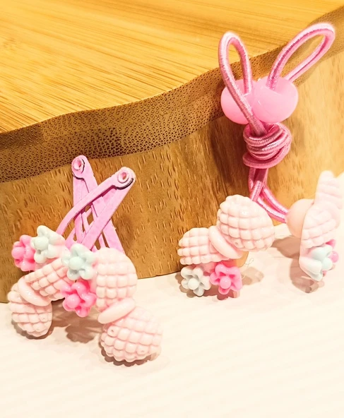Monalisa Home İkili Pembe Lüks Figürlü Küçük Lastik Ve Çıtçıt Toka