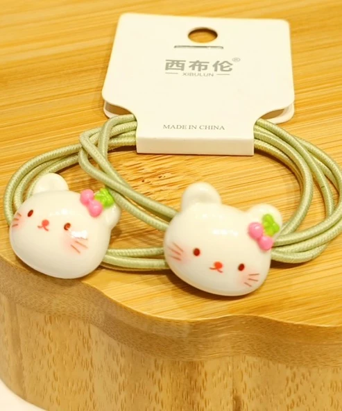Sasta Lastik Saç Tokası Yeşil Sticker Hediyeli 3 adet