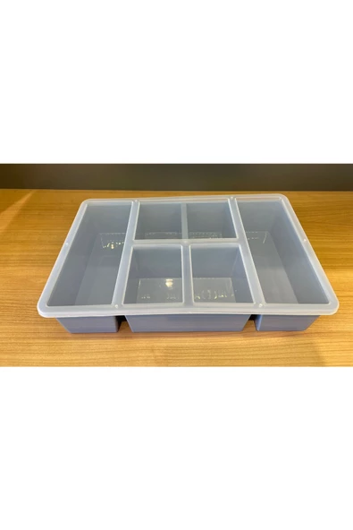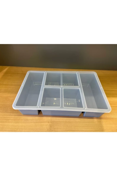 Füme Luna 5 Bölmeli Çekmece Düzenleyici Kapaklı Çatal Kaşık Kutusu - Mutfak Organizer