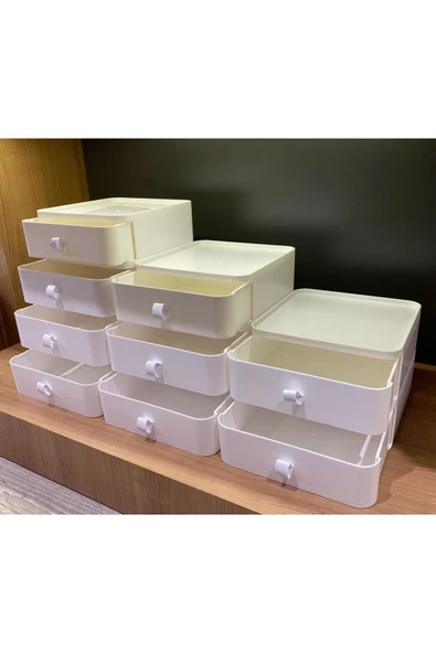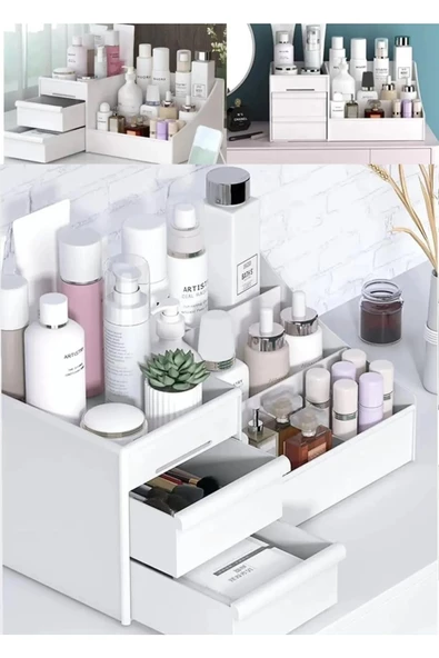 2 Katlı Çekmece Masaüstü Organizer Makyaj Takı Aksesuar Düzenleyici Saklama Kutusu Beyaz
