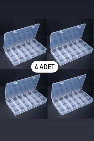 4 Adet 18 Bölmeli Şeffaf Kolye Yüzük Takı Kutusu Organizer Düzenleyici Kutu