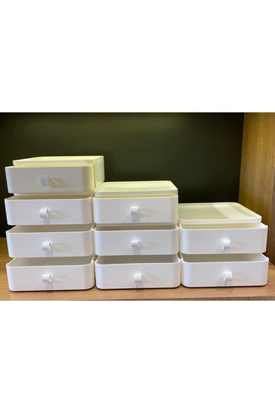 3 Katlı Çekmece Masaüstü Organizer Makyaj Takı Aksesuar Düzenleyici Saklama Kutusu Beyaz