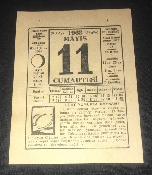 11 MAYIS 1963 CUMARTESİ TAKVİM YAPRAĞI (Sahafiye Kitap)