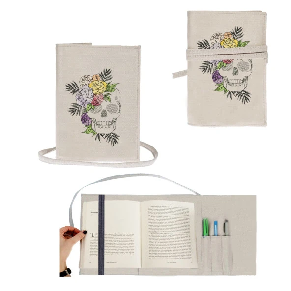 Sevimli Kurukafa - İskelet Nakışlı Kitap - Tablet - Ebook Çantası / Kılıfı