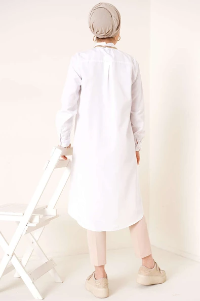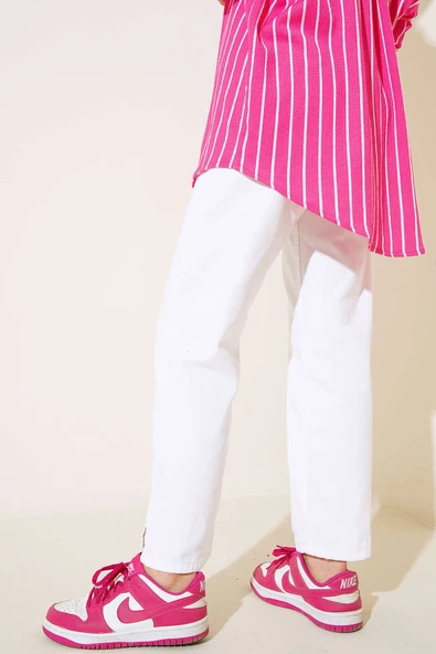 Paça Yırtmaçlı Jean Pantolon Beyaz