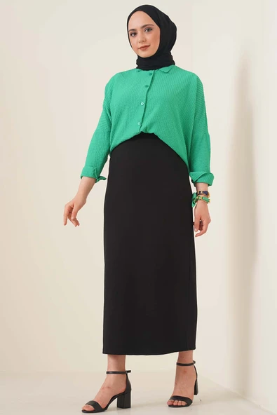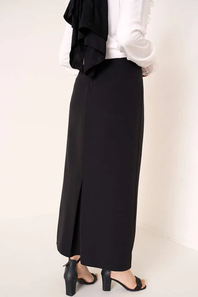 Kapalı Yırtmaçlı Kalem Etek Siyah
