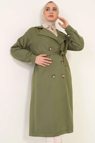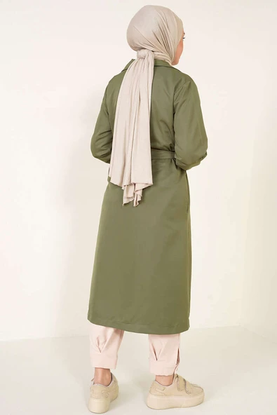Üç Düğmeli Kruvaze Yaka Haki Trençkot