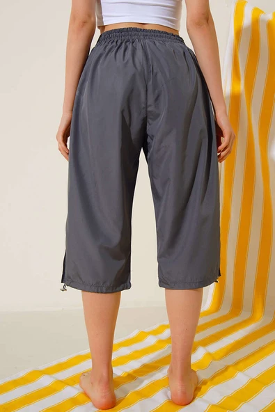 İp Detaylı Beli Lastikli Dar Paça Haki Pantolon