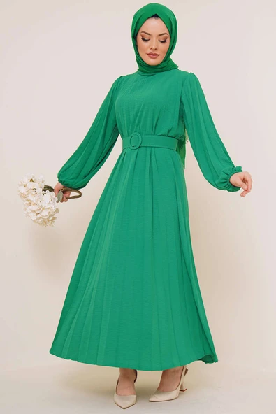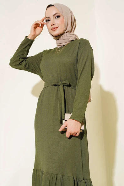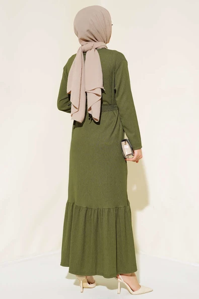 Bürümcüklü Kuşaklı Kat Elbise Haki