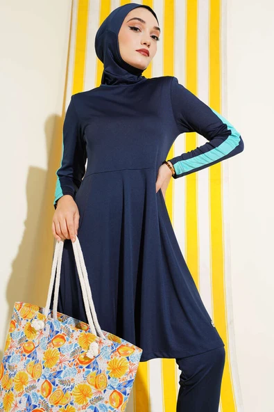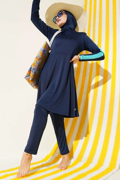 Metal Armalı Likralı Tesettür Mayo Koyu Lacivert