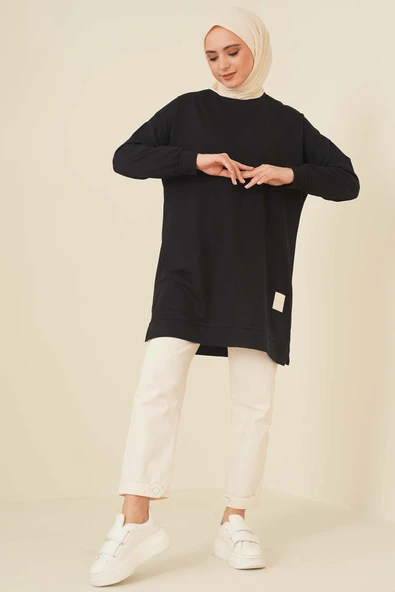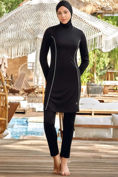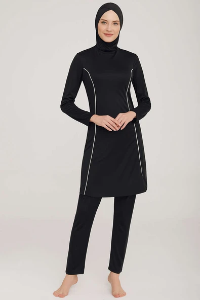 Yanı Çizgi Detaylı Tesettür Mayo Siyah