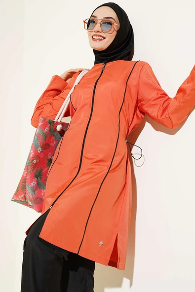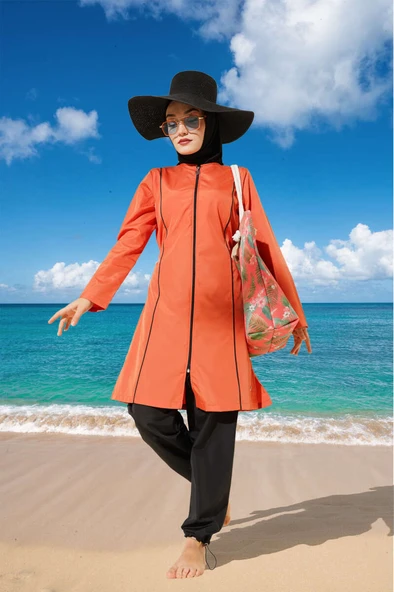 Metal Armalı Fermuarlı Tesettür Mayo Tarçın