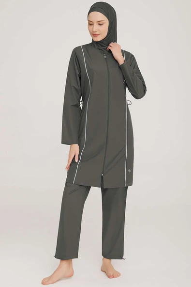 Metal Armalı Fermuarlı Tesettür Mayo Antrasit