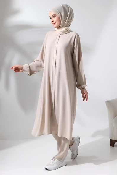 Kadın Hac ve Umre Kıyafeti Tesettür İkili Takım Krem