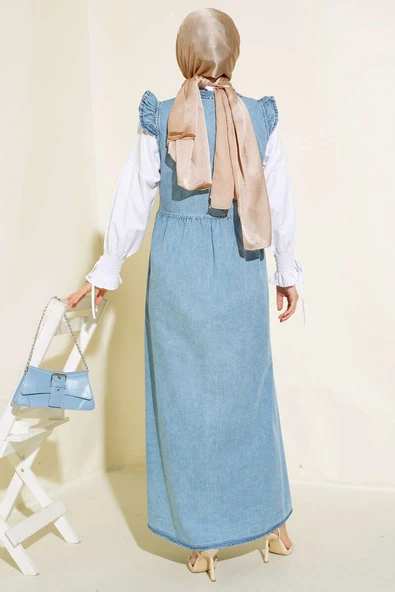 Düğmeli Kot Jile Elbise Kot Mavisi