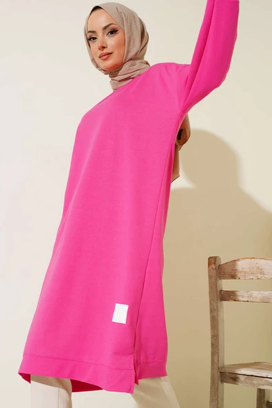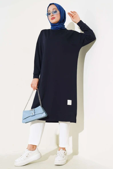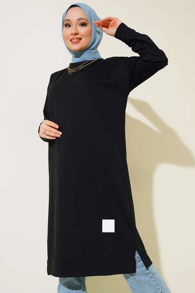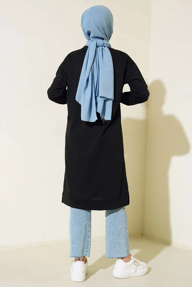 Allday Siyah Basic Pamuklu Süprem Sweat Tunik