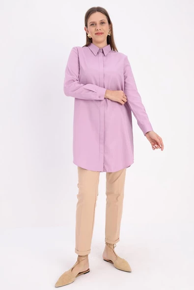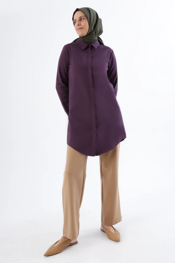 Allday Üzüm Basic Gizli Patlı Gömlek Tunik