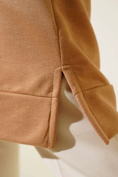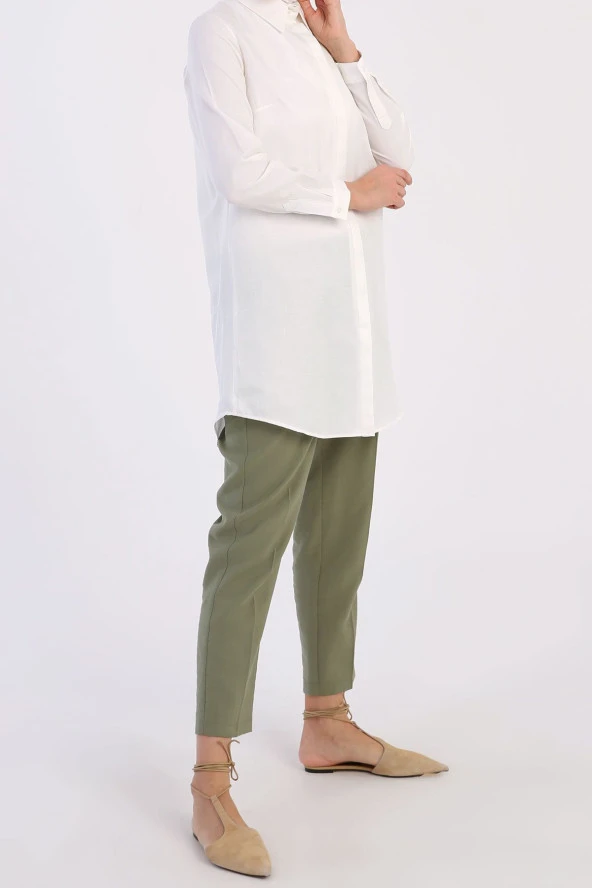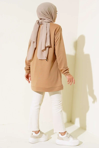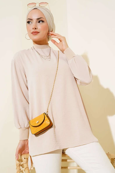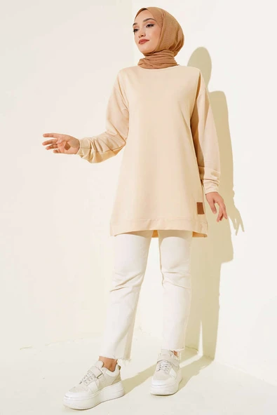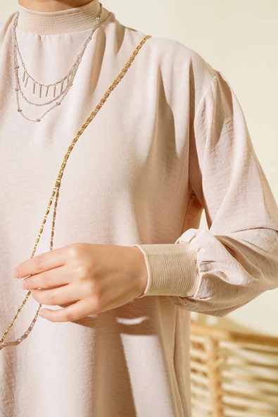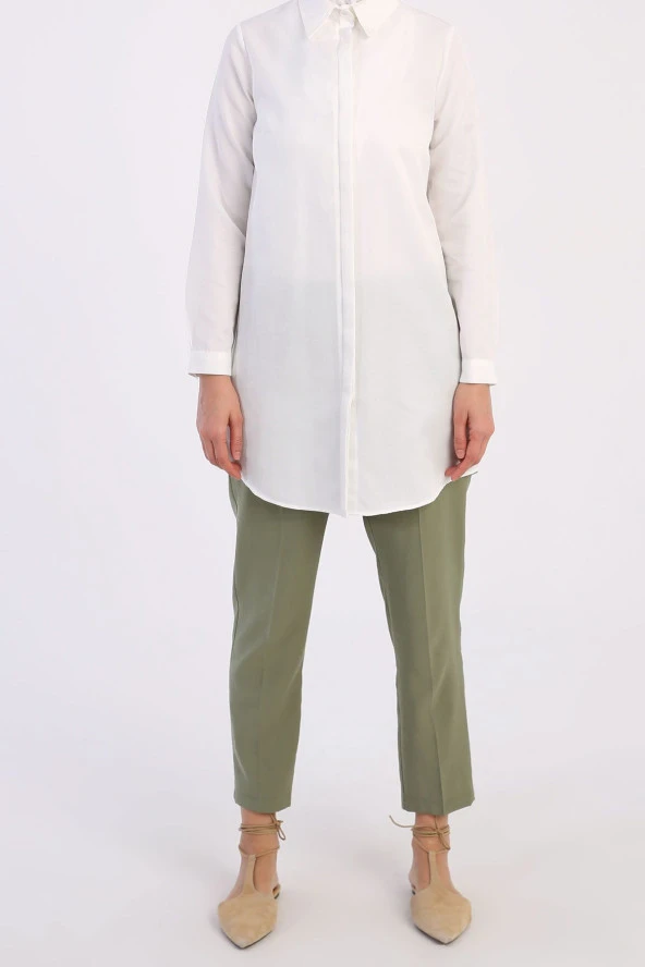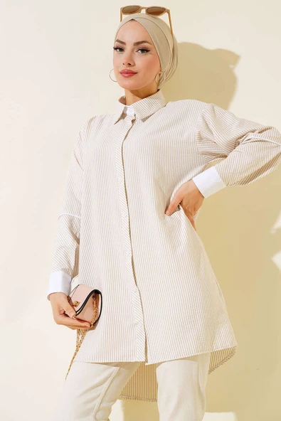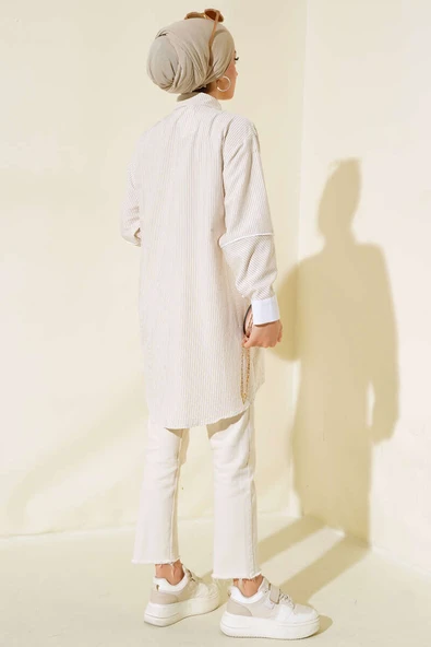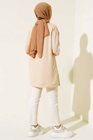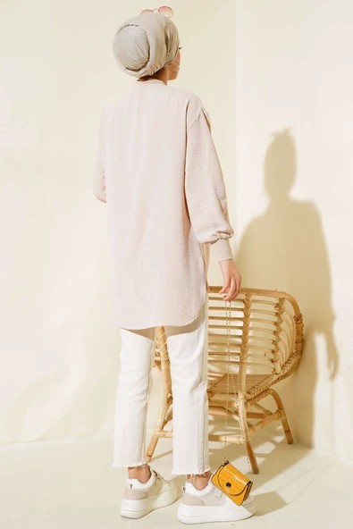 Allday Ekru Basic Gizli Patlı Gömlek Tunik