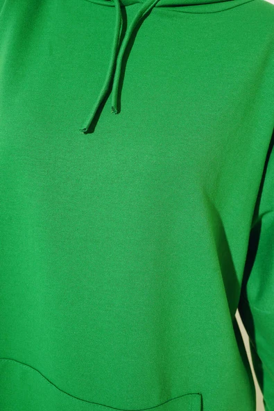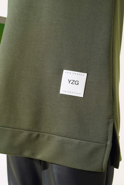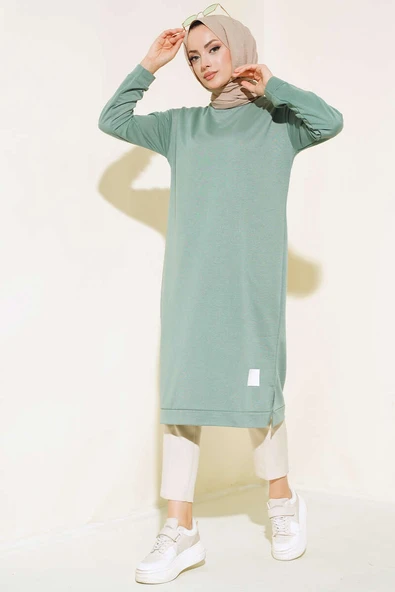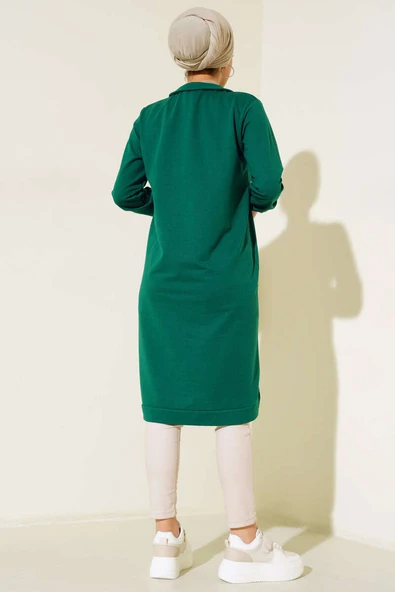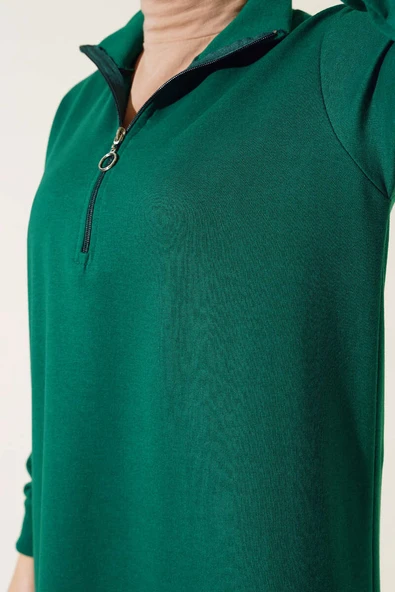 Yarım Fermuarlı Basıc Uzun Tunik Zümrüt Yeşili