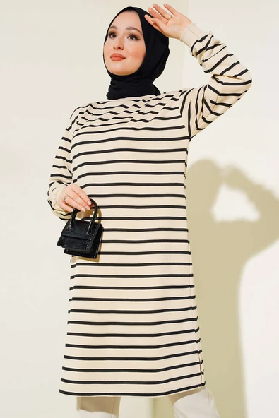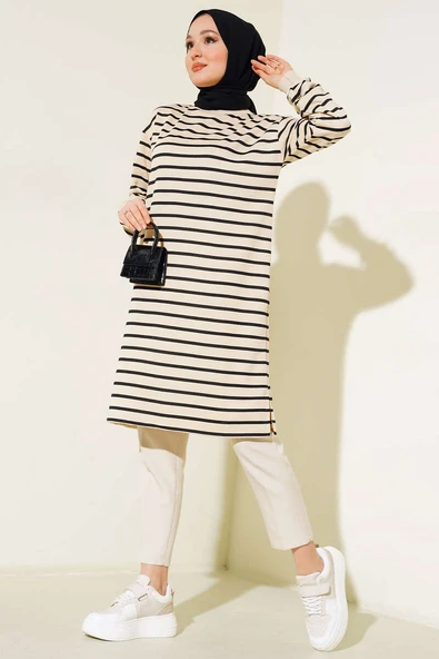 Siyah-Ön Roba Dubleli Sweat Tunik