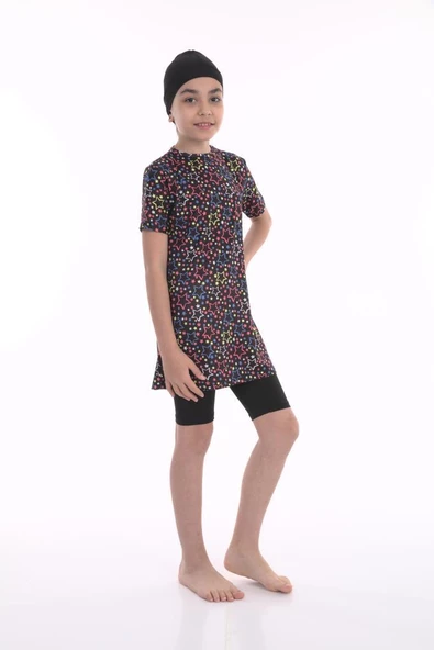 Form Angel Kız Çocuk Desenli Kısa Kollu Tesettür Mayo 1904-4