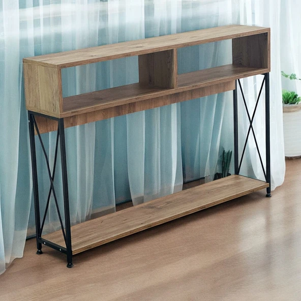 Tv Ünitesi Raflı Metal Ayaklı Tv Sehpası Atlantik Çam