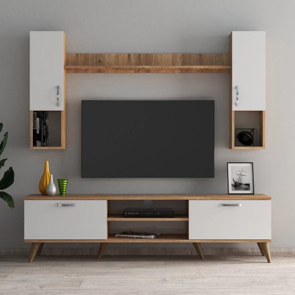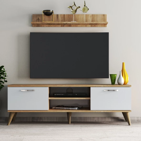 IRMAK DÜNYASI Irmak Mobilya Tv Sehpası Tv Ünitesi Ceviz Beyaz Yaşam Ünitesi Duvar Ünitesi Mini Tv Sehpası