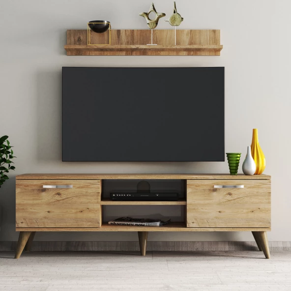 Mega 180 lik Kapaklı Raflı Tv Ünitesi Çam Hazeran Kapaklı - TVU0204