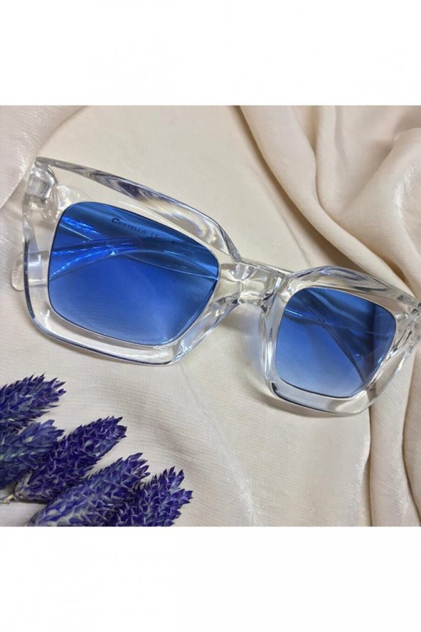 Cat Eye Kristal Şeffaf Kadın Güneş Gözlüğü Mavi Cam