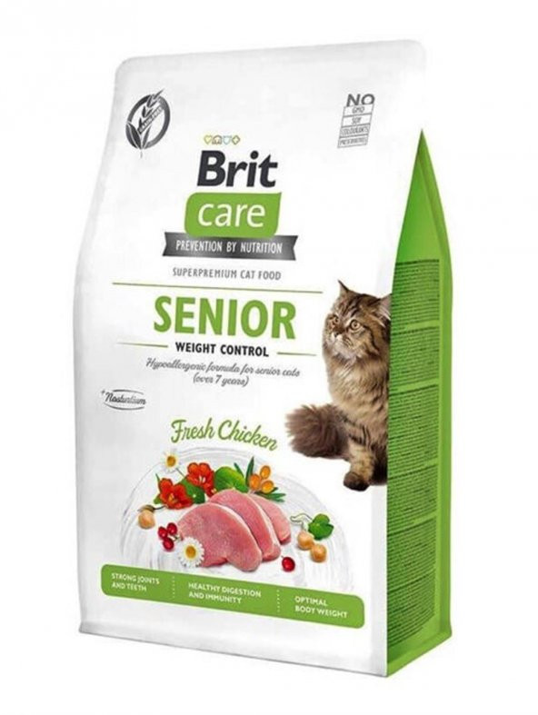 Brit Care Senior Weight Control Hypoallergenic Kilo Kontrolü İçin Tavuklu Tahılsız Yaşlı Kedi Maması 2 Kg
